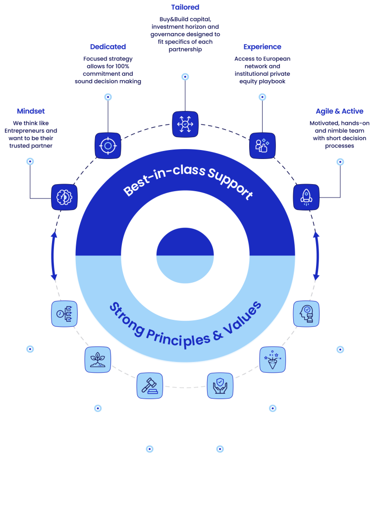 Buy&Build capital, investment horizon and governance designed to fit specifics of each partnership